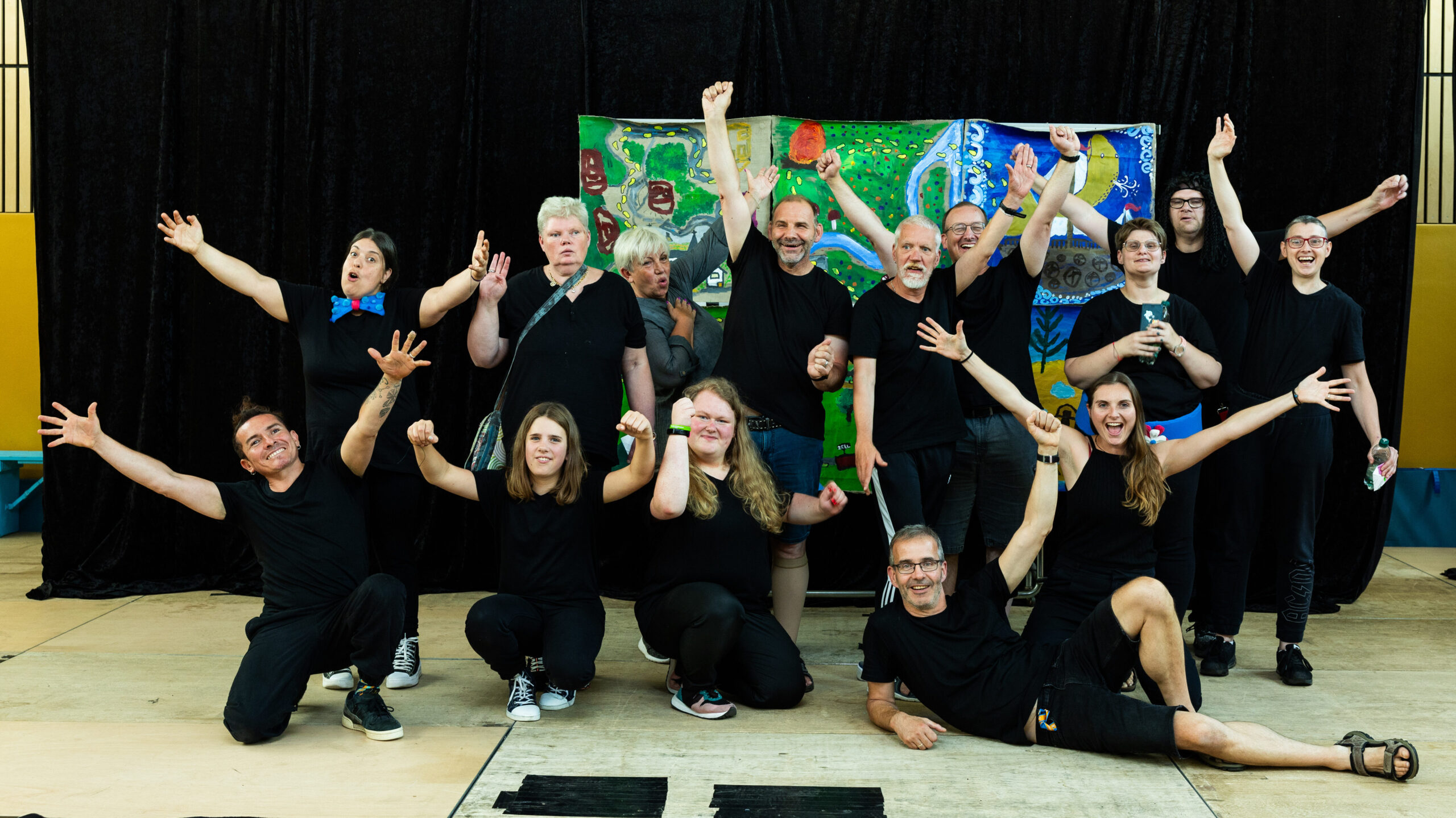 »Seid ihr bereit?«, rufen die Schauspieler und Schauspielerinnen nacheinander und jedes Mal antwortet die Gruppe mit einem lauten »Ja!«. Während alle hinter der Bühne warten, strömen über hundert Menschen in die Turnhalle St. Martin Düngenheim, die in einen Theatersaal verwandelt wurde.