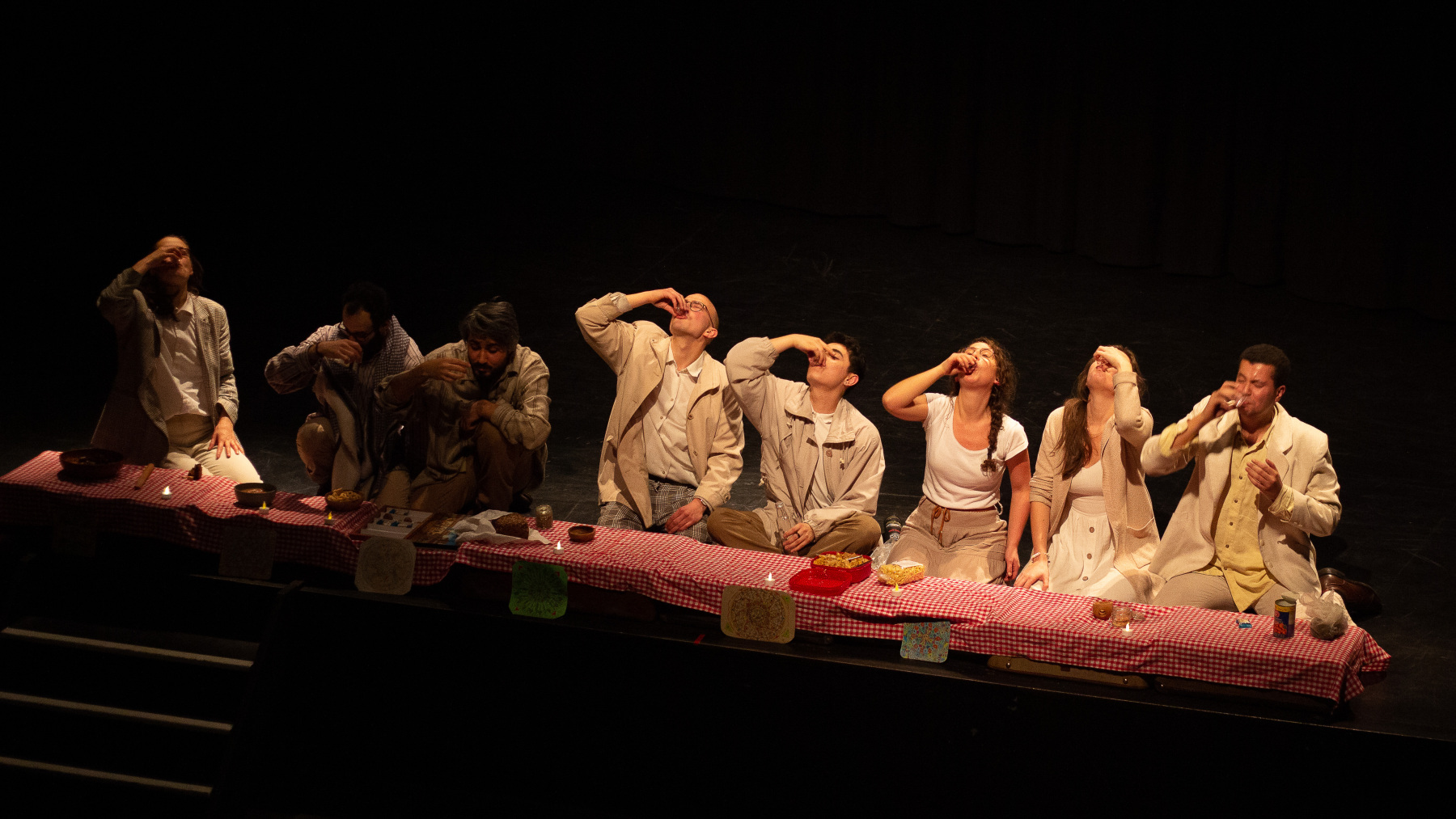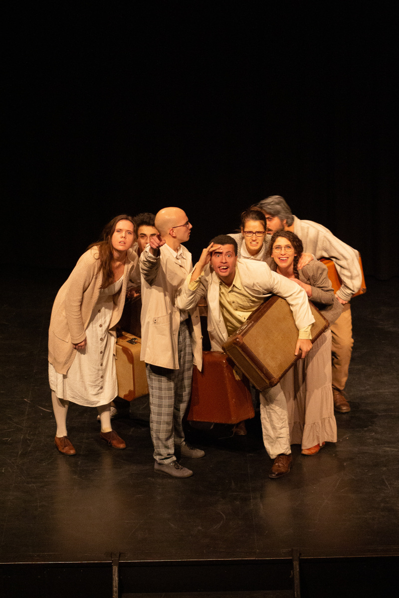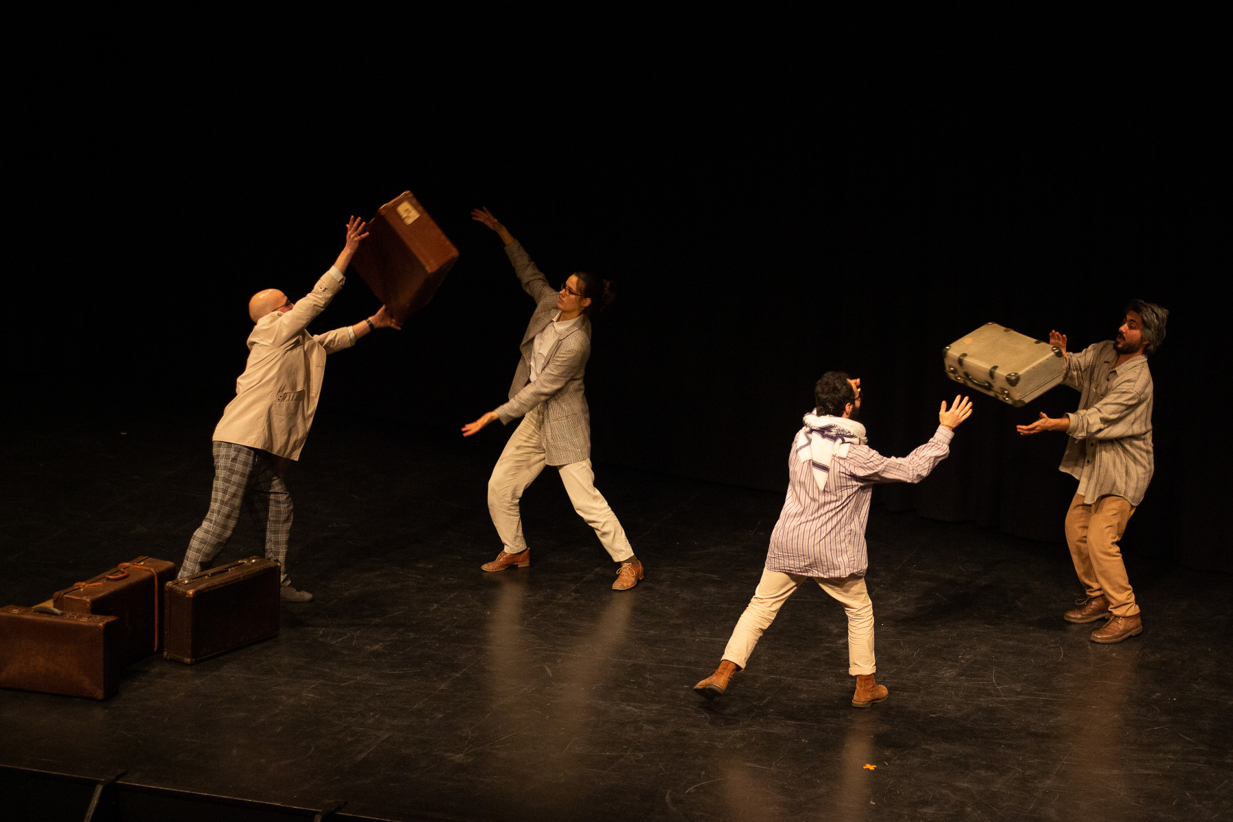 Menschen kommen von Überall und treffen irgendwo zufällig aufeinander. Jede*r trägt einen Koffer mit sich. Einen Koffer voller Erinnerungen und Gefühle. Eine gemeinsame Reise beginnt, auf der Suche nach einem Ort zum Bleiben und sich Wohlfühlen. Doch auf der Reise kommt bei jedem einzelnen irgendwann das Gefühl von „Heimweh“ auf. Aber: wonach genau haben wir eigentlich Heimweh? Nach dem Haus, in dem wir geboren wurden und in dem bis heute unsere Familie wohnt? Nach Mutter, die immer besorgt fragte, ob wir auch genug Essen eingepackt haben? Nach dem Duft von frisch angebratenem Knoblauch oder nach dem Geräusch von Wildtauben? Oder vielleicht nach der Zeit in der wir uns als Kinder noch nicht vor allem allein verantworten mussten?